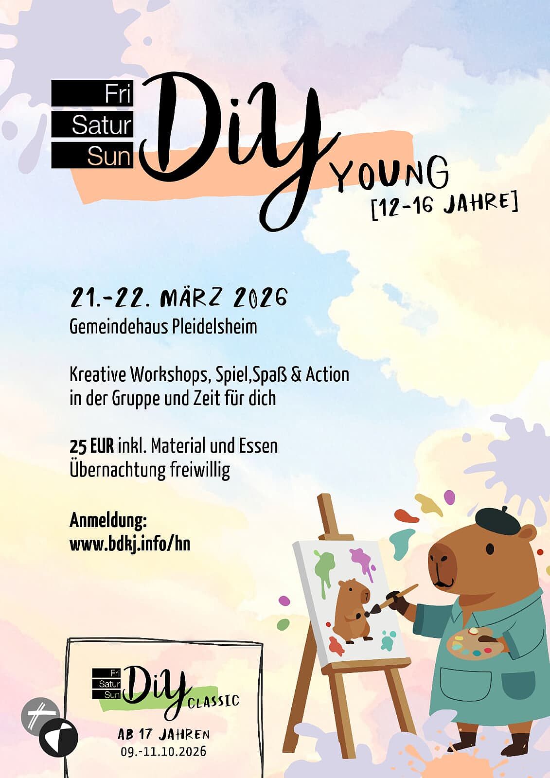 Kosten: 25,- EUR pro Person für Übernachtung (freiwillig), Verpflegung, Material